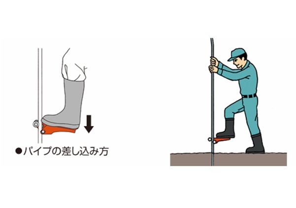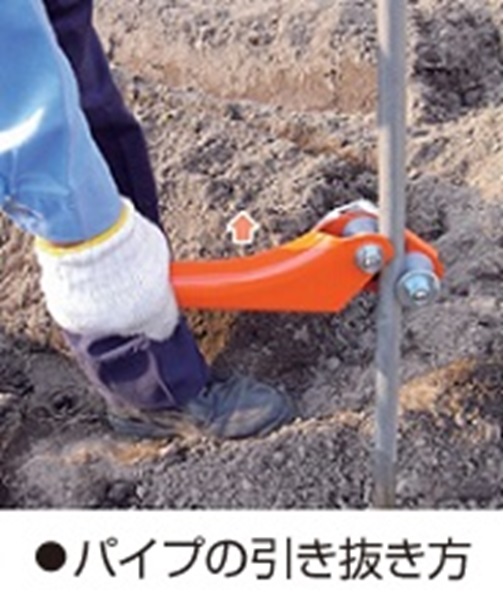 パイプハンド・パイプステップをパイプにセットし、体重をかけるだけで楽にパイプを立てることができます。引き抜きにも利用でき、抜き差し自由自在!農業用ビニールハウス用品、パイプ支柱、打ち込みできないアーチパイプにも使用可能。