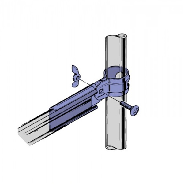 ビニペット端部とアーチパイプをつないで止める専用金具部品です。ボルトナット付メッキ仕上げです。
