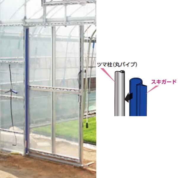 スキガードは、ツマ柱(丸パイプ)に取り付けます。