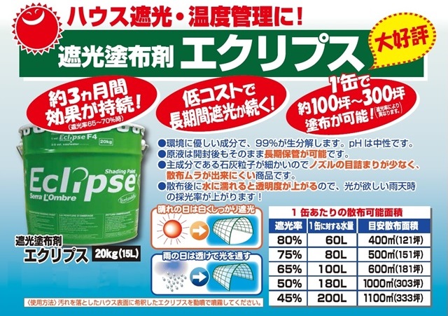 農業ハウス用遮光剤「エクリプス」|品揃えと低価格!農業資材・農業用品専門通販のインターネットホームセンター「日本農業システム」