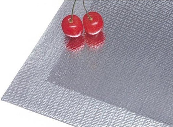 アルミ蒸着フィルムで四層構造となっていますので、高い反射力が永い間保たれる。表面は鏡面光沢、裏面はスリ硝子状なので、反射量の加減ができます。有孔構造となっておりますので、排水性に優れ表面の汚れ防止になります。虫除け・保温・反射・遮熱等用途は無限です。