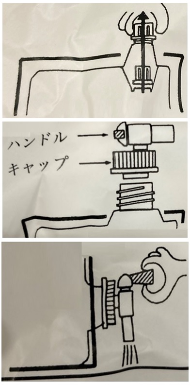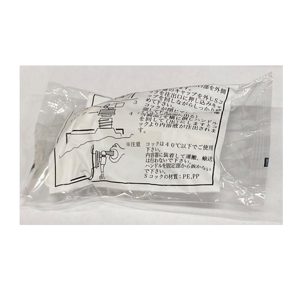 ②内容器のキャップを外しSコックを注出口に押し込みキャップを回しながらしっかり締めて下さい。