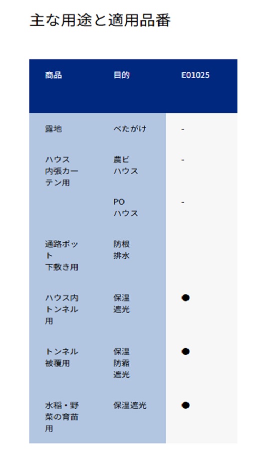 ●水稲育苗、野菜の育苗(保温、遮光) 1.適度の通気性、遮光性、保温性を有するため、