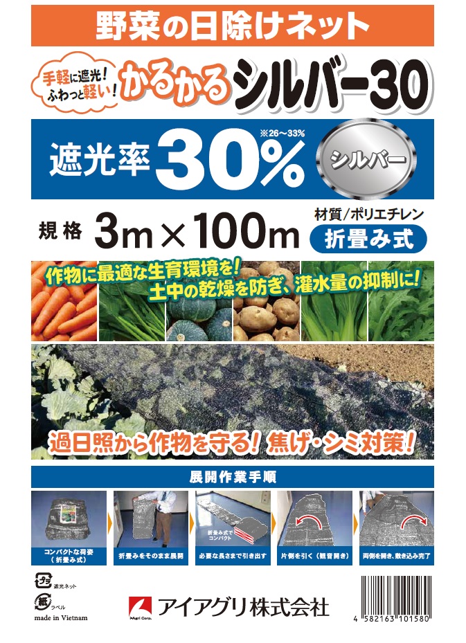 ・遮光率30%ですので、遮光しすぎず、夏場の過剰な日射から作物を守ります。