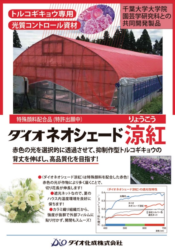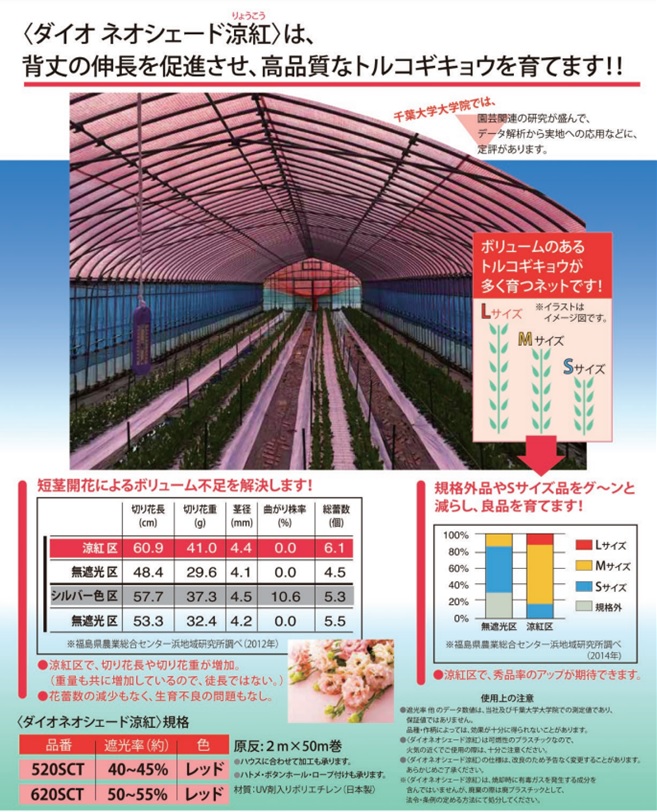 トルコギキョウを伸長させるのに有用な特定の光線領域を多く取り込む機能を有しています。