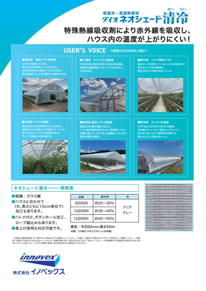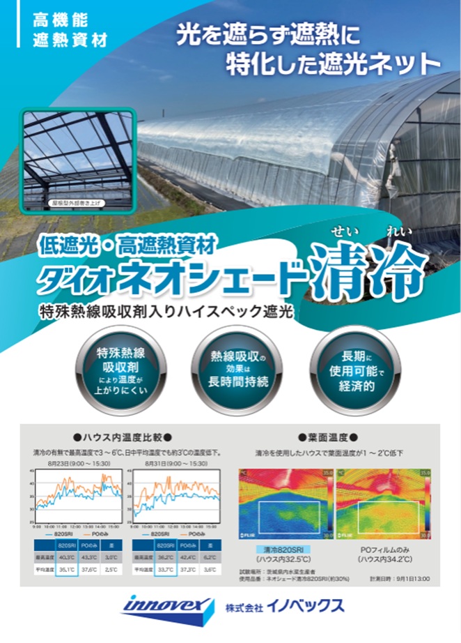 ダイオネオシェード清冷は従来の遮光ネットに熱線をブロックする機能を