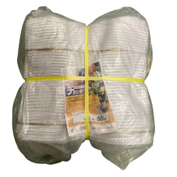 酸化チタン配合フィルムでハウス内がこれまでの黒・銀の遮光ネットを使用したときと比較にならない明るさになります。ラッセル織りで目ずれしにくく、カット時のホツレが少ない。