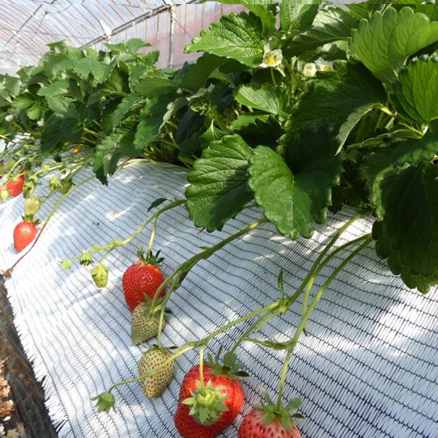 赤外線も高反射するため、生産物の光合成促進、色付け、遮光、遮熱に効果的です。
