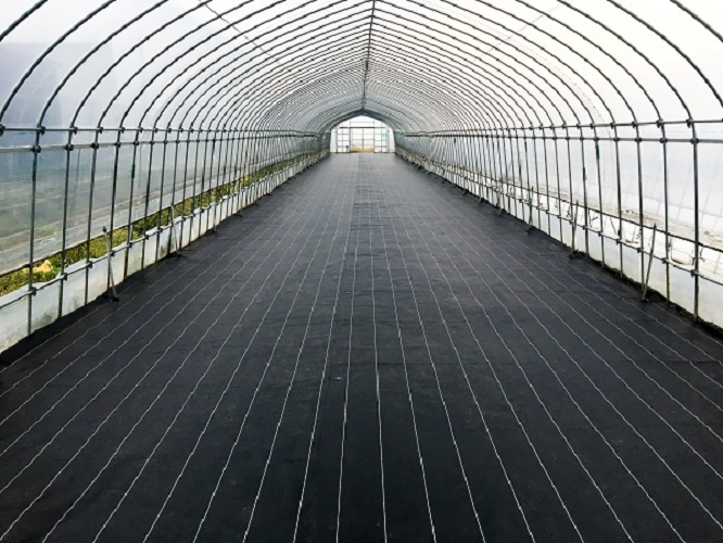 高密度織物シートにより防草効果抜群。通路のぬかるみを防止し、地面からの湿気を押さえる。