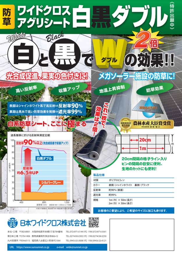 表面は白で高反射、裏面は黒で遮光による防草を両立