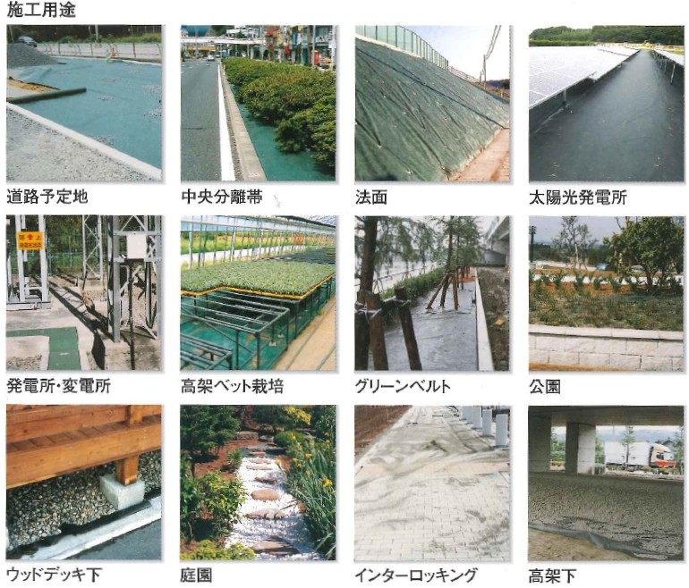 空気・雨水・液体肥料を通しやすく、さまざまな用途に対応できる雑草抑制シートです。