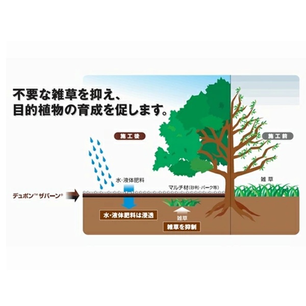 ザバーンは米国デュポンが開発した、ポリプロピレン製・4層スパンボンド不織布の防草シートです。