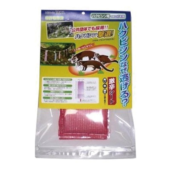 ・ ハクビシン・タヌキ・アライグマなどの小動物が嫌う刺激臭で危険を訴え、赤色のシートを風で揺らすことにより視覚からも警戒心をあおり、進入を防ぎます。 ・ 臭い・色・揺れでハクビシン・タヌキ・アライグマを撃退。 ・ 猪・イノブタの嫌なニオイを放ちます。人間の1000倍もある嗅覚を利用、猪の嫌いな唐辛子の臭いで寄せ付けないようにします。 ・ 嫌いな色で怖がらせます。青・紫色を嫌う猪、イノブタの習性 を利用、風による揺れで更に威嚇し慣れを防ぎます。 ・ 設置がとても簡単!ロープを張って吊り下げるだけ。 誰にでも簡単設置が簡単です。 ・ 効果が長続きします。約1年間にわたり臭い効果を持続します。 ・ 長期モニターテストを繰り返し、効果の高い、色・形状・臭い!