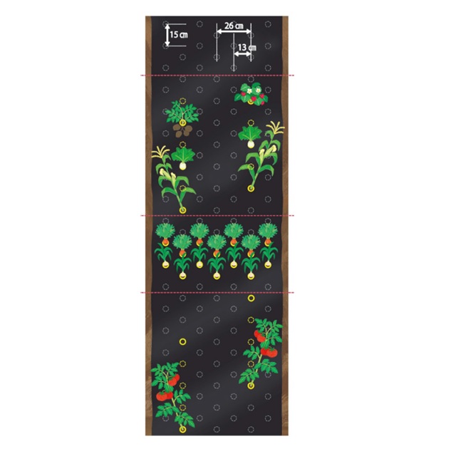 作物の植付け時に使わなかったミシン目穴を活用して、コンパニオンプランツの混植や、