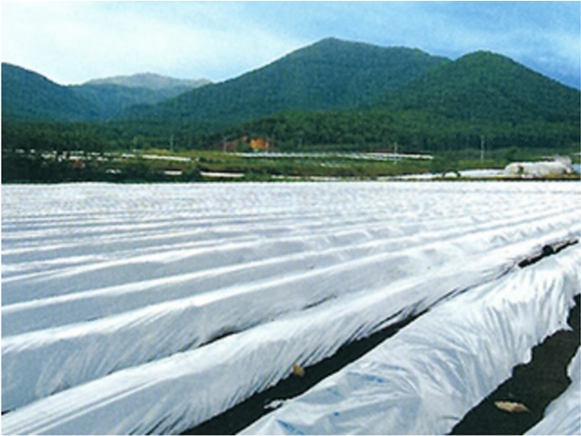 太陽熱の乱反射で農地の過熱を防ぎ、特に夏場に効果的。