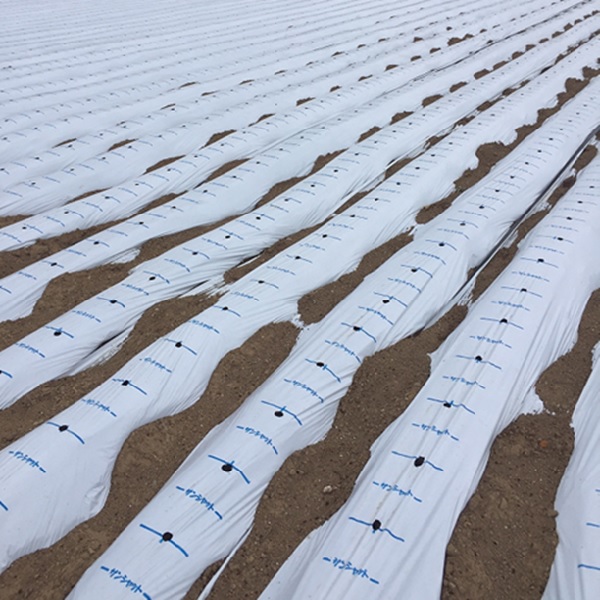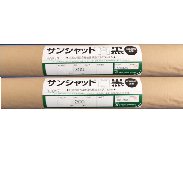 白黒の特殊三層構造マルチフィルム。白色層が太陽光を反射し、土壌の地温上昇を抑制します。黒色層は雑草の発育を防ぎ、蒸散を抑えて水分保持効果にも優れています。