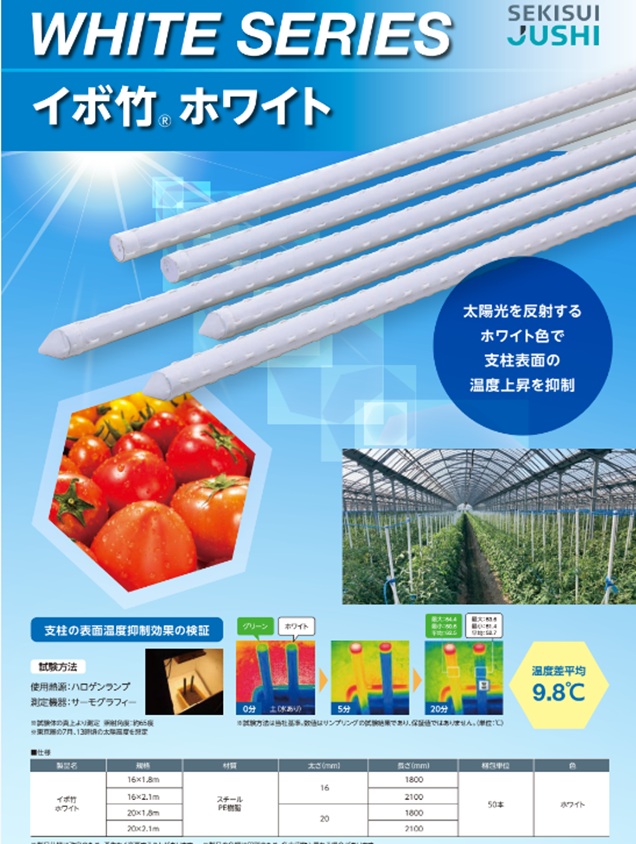 ●太陽光を反射するホワイト色で支柱表面の温度上昇を抑制
