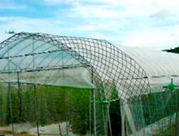 トンネル栽培時強風で被覆材がとばされるのを防ぐネットです。