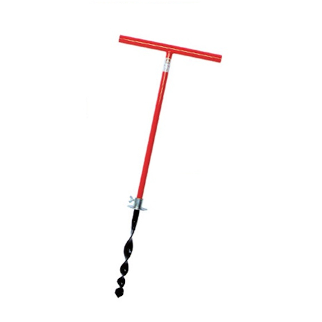 かたい粘土質や、石が多くてパイプや支柱の立てにくい所にもネジ込んでいける下穴堀り器。