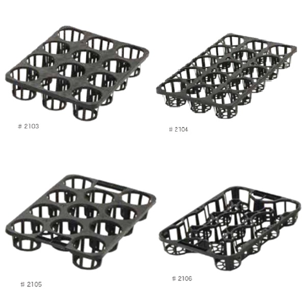 穴トレーは、ポットの転倒防止や持ち運び・出荷時の安定確保に役立つ園芸用トレーです。