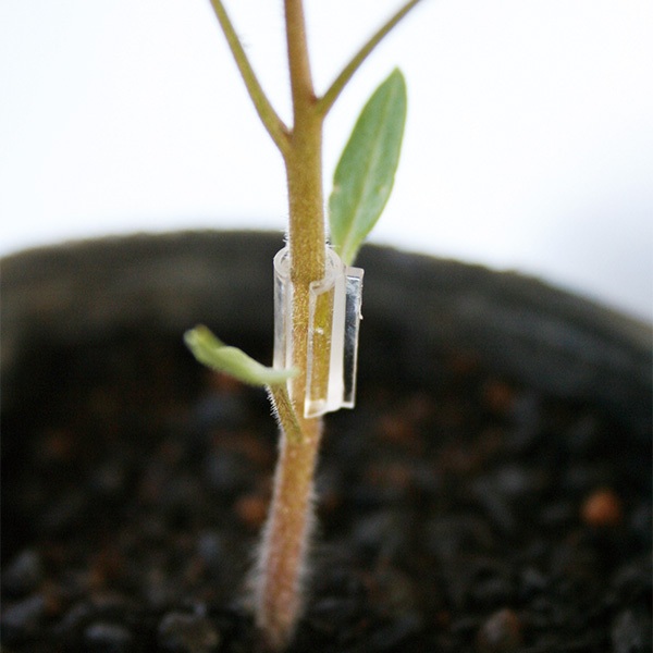 ナスニックス社の接木クリップ「絆(きずな)」は、初心者からプロの声を反映し、長年の実績をもとに開発された高機能タイプ。上下どちらからでも使える対称構造で、作業がしやすく能率もアップします。内部の直線的な溝が穂木と台木をしっかり密着させ、汁液を排出して高い活着性を実現。挿入時も真っ直ぐ入りやすく、振動によるズレも防げるため、安定した接合で良質な苗作りに貢献します。また、ラッパ状の挿入口により茎を傷めにくく、植物に優しい設計です。