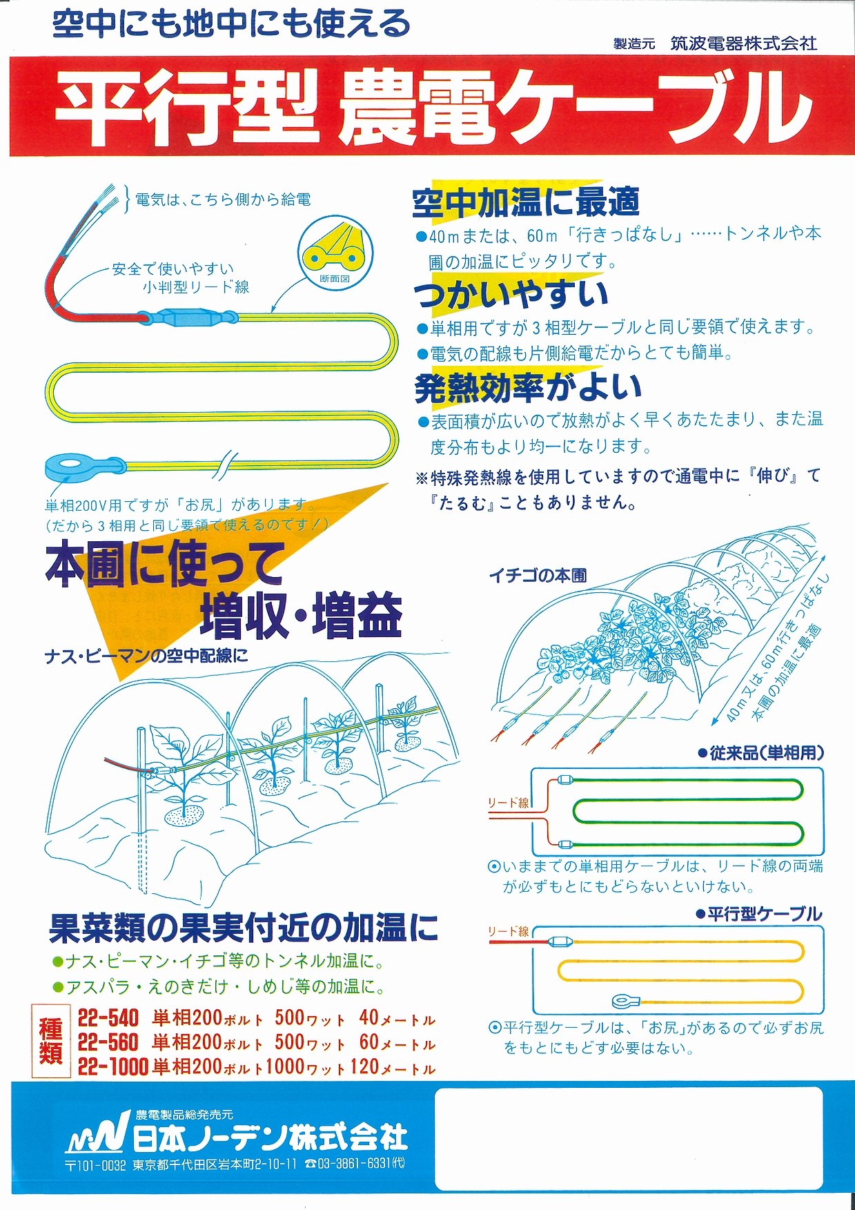 空中にも地中にも使える農電ケーブルです。
