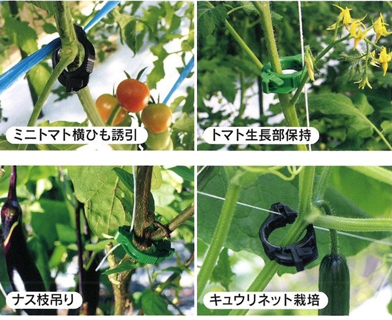 ・細い紐から麻ひも等の太い紐まで対応し、縦紐、横紐・ネット誘引等にも使用できます。