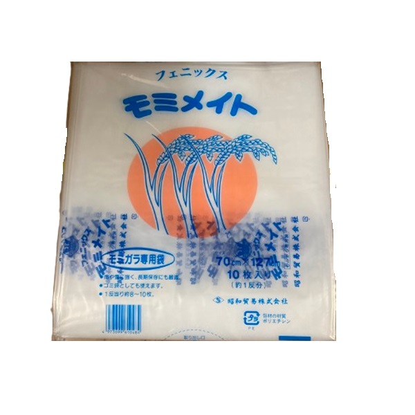 1袋当り約14kg、1反当り約8~10枚。新素材を使用のため、従来のポリエチレン袋に比較して引張り・突刺し・衝撃に対して抜群に強い使い捨てモミガラ袋です。裂傷・耳切れ等が少なく、気候や温度変化にも強いので、安心して使えます。暗渠排水、畜舎下敷、燃料、くん炭等の保管・運搬用に大量に使用されています。10枚ずつ小袋に入っており使いやすい。