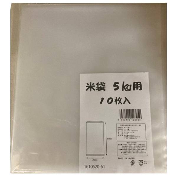 透明な厚手ポリ袋。米だけでなく豆などにも使用できます。