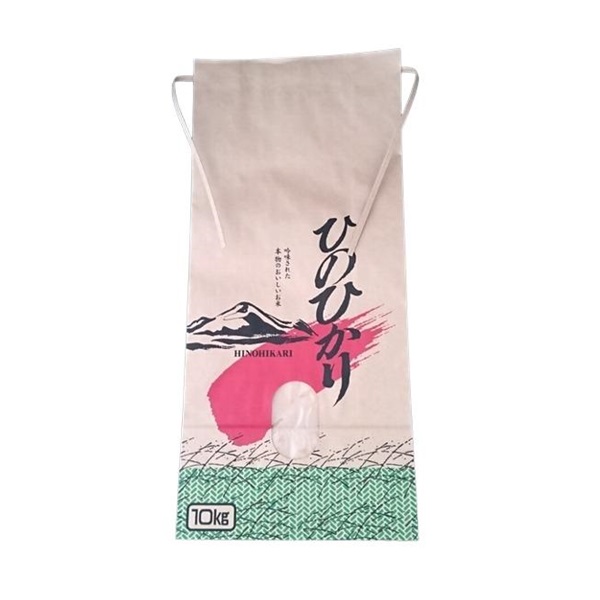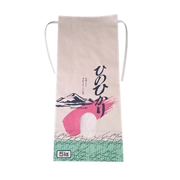 2層により耐久性も抜群。口を閉じる際は、紐で結ぶだけ。中身が見えるように窓付き。自然環境にも優しい米袋です。