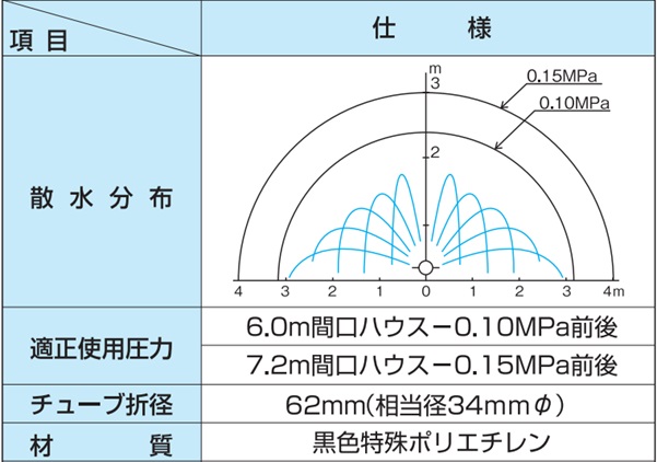 7.2m間口までのハウス全体をムラなく均一に灌水できます。