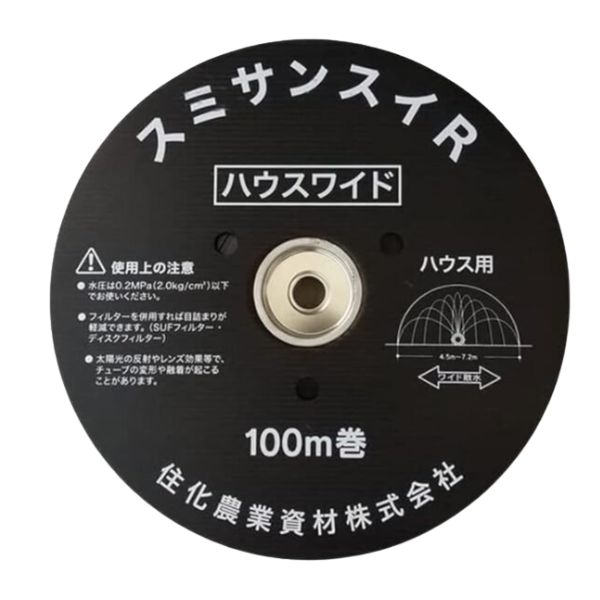 80m先までしっかり灌水できるので、長いハウスでもお使いいただけます。
