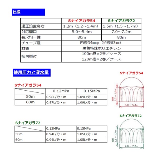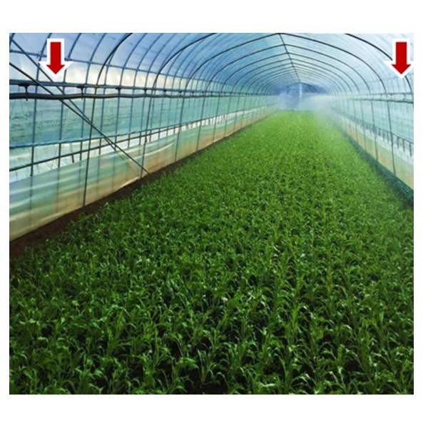 ミストエースSナイアガラ54は、間口5.0~5.4m間口のハウスで、高さ1.2m~1.4mの高さに設置します。