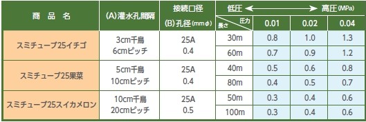 作物によって、孔径、孔ピッチ、散水量などを変えた仕様をご用意しております。