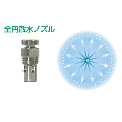 頭上、サイド潅水用としてコックより水量調節ができ、長距離均一潅水に最適です。散水量が多く、短時間で散水できます。