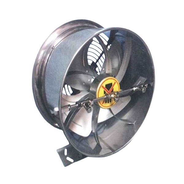 モーターは全閉、防滴型。モーターを羽根の前面に配置する自己冷却システム。モーターの焼きつき防止サーマルプロテクター内蔵。ファン前、後面に危険防止、異物混入防止網を装備。ファン側面に空気導入を装備、吸入空気量アップ。本体材質はステンレス製。羽根のバーリング加工により、水平方向への角度調整可能。最大到達距離45m。