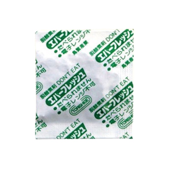 エバーフレッシュは無酸素の密封空間を容易に作る鉄系・非鉄系の脱酸素剤。今までの真空包装や窒素ガス充填包装では実現できなかった、長期の無酸素パックが可能になりました。初期の酸素吸収速度を抑え、作業性の良さを実現しています。 100ヶ入りです。