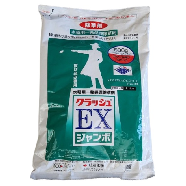 水溶性のKCl(塩化カリウム)を担体に使用し特殊製剤技術で製造した細粒状の自己拡散型除草剤を、水溶性フィルムで50gずつパックした投げ込み型のジャンボ剤です。