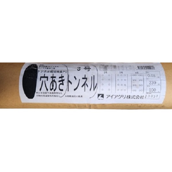 トンネル栽培における換気の手間を大幅に削減した、低コストの穴あきビニールです。