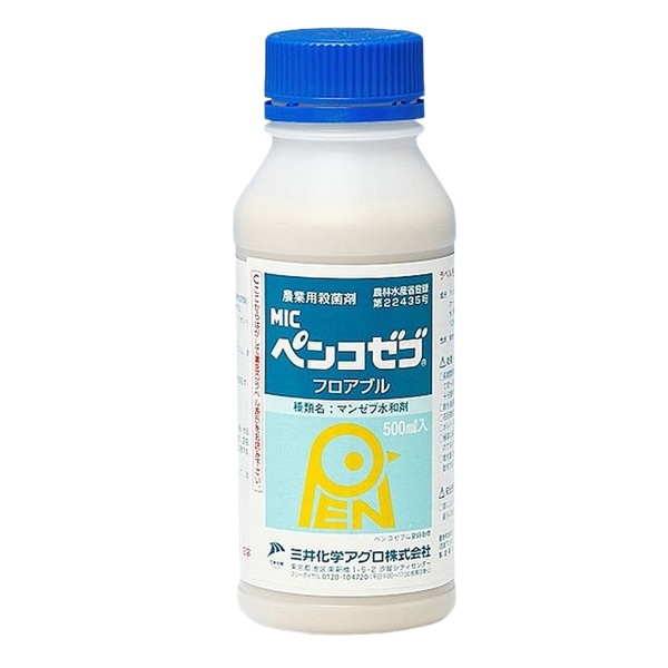 ペンコゼブ(マンゼブ)をフロアブル化した製剤で、作物にムラなく均一に付着し、水和剤と比較して果面の汚れがほとんど目立ちません。