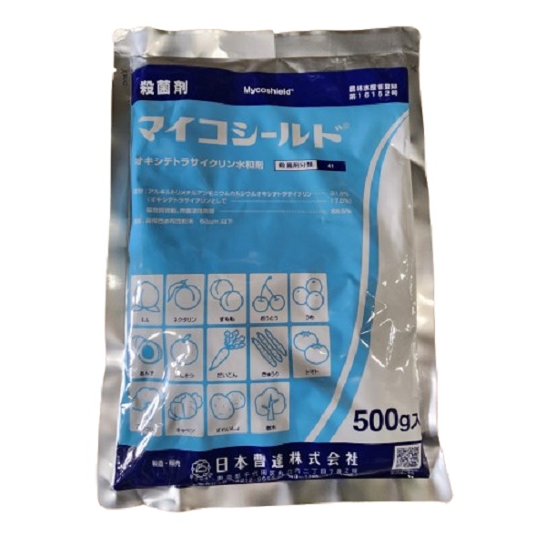 ●主成分のオキシテトラサイクリンは、もものせん孔細菌病やきゅうりの斑点細菌病の病原菌にすぐれた効きめがあります。