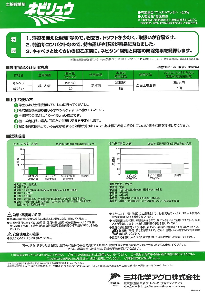 ●粉粒剤なので粉剤に比べて粉立ちが大幅に抑制されています。