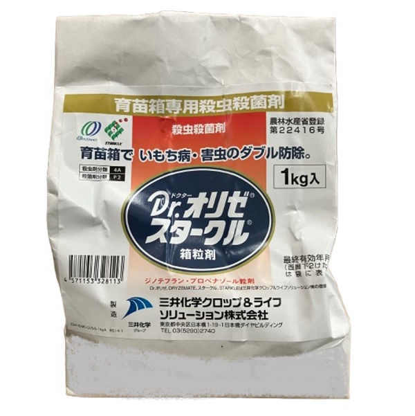 ●病害抵抗性誘導で耐性菌リスクの小さいプロベナゾールと幅広い殺虫活性を示すジノテフランを混合した箱処理剤です。