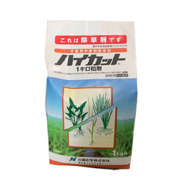 農薬の種類:シハロホップブチル・ジメタメトリン・ハロスルフロンメチル・ベンゾビシクロン粒剤