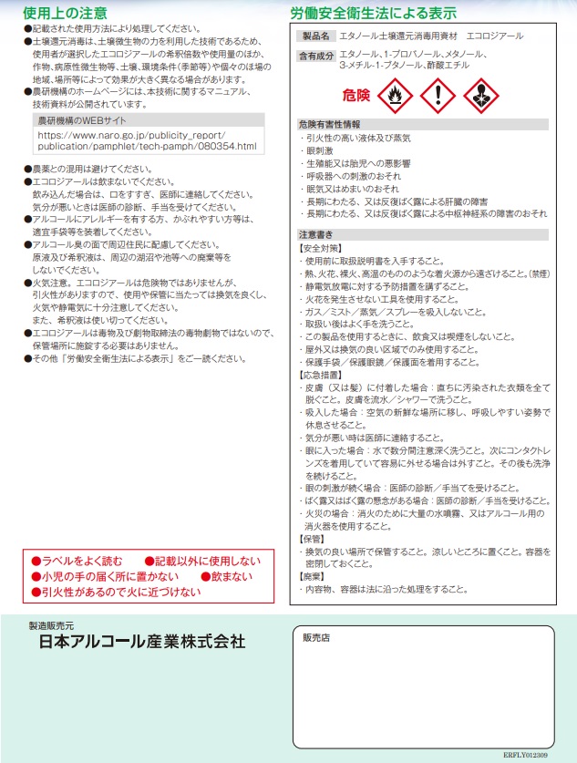 ・主成分は、土壌や作業者や周辺環境に安心なエタノール