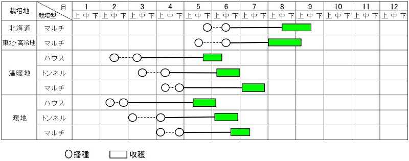 ※この作型表は参考です。地域や栽培方法によって異なります。