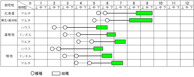 ※この作型表は参考です。地域や栽培方法によって異なります。
