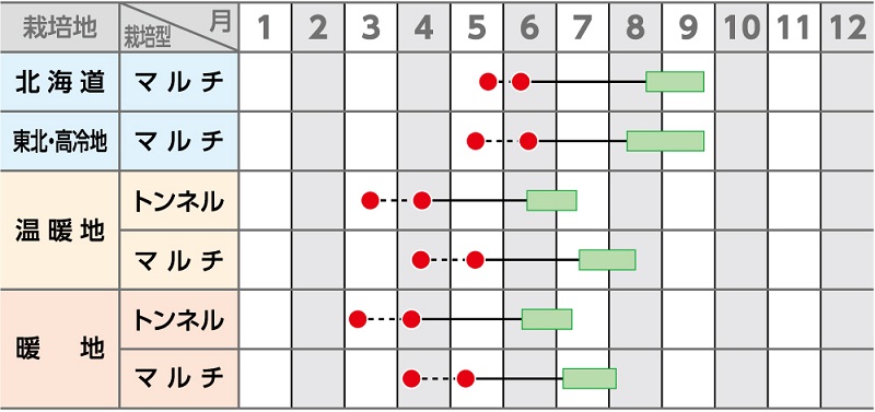 ※この作型表は参考です。地域や栽培方法によって異なります。