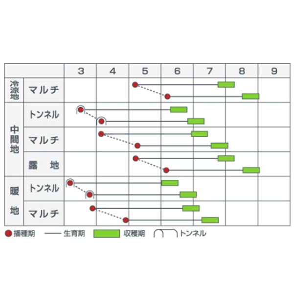 トンネル~露地栽培に適する生育日数85日程度のバイカラーコーンです。