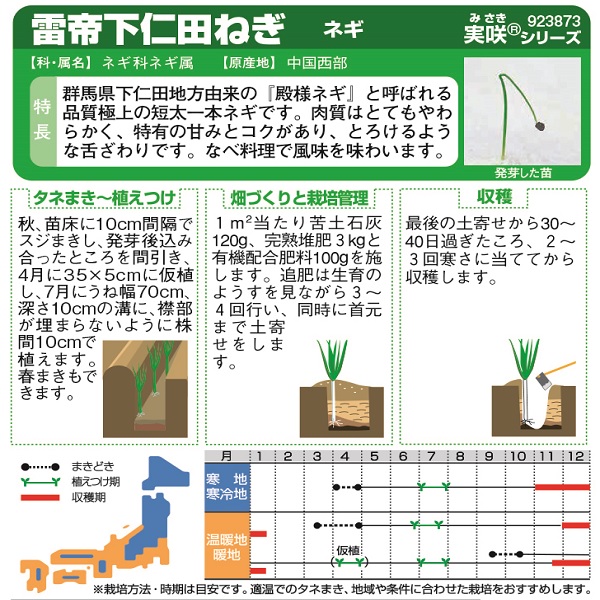 煮物用に優れた品質の品種で、うまいネギとして市場人気が高く、贈答用などの特殊需要が多いので、12月はじめより12月下旬までに収穫し、箱詰にして出荷したいです。